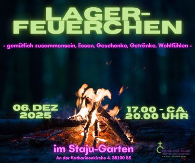 Vorweihnachtsstress? Klausurenstress? Dagegen können wir etwas tun! Einen Abend zur Ruhe kommen, entspannt am Lagerfeuer sitzen, leckere Snacks, warmer Glühwein und Punsch, das erste Weihnachtsgeschenk bekommen, nette Leute treffen und einen schönen, entspannten Abend haben.