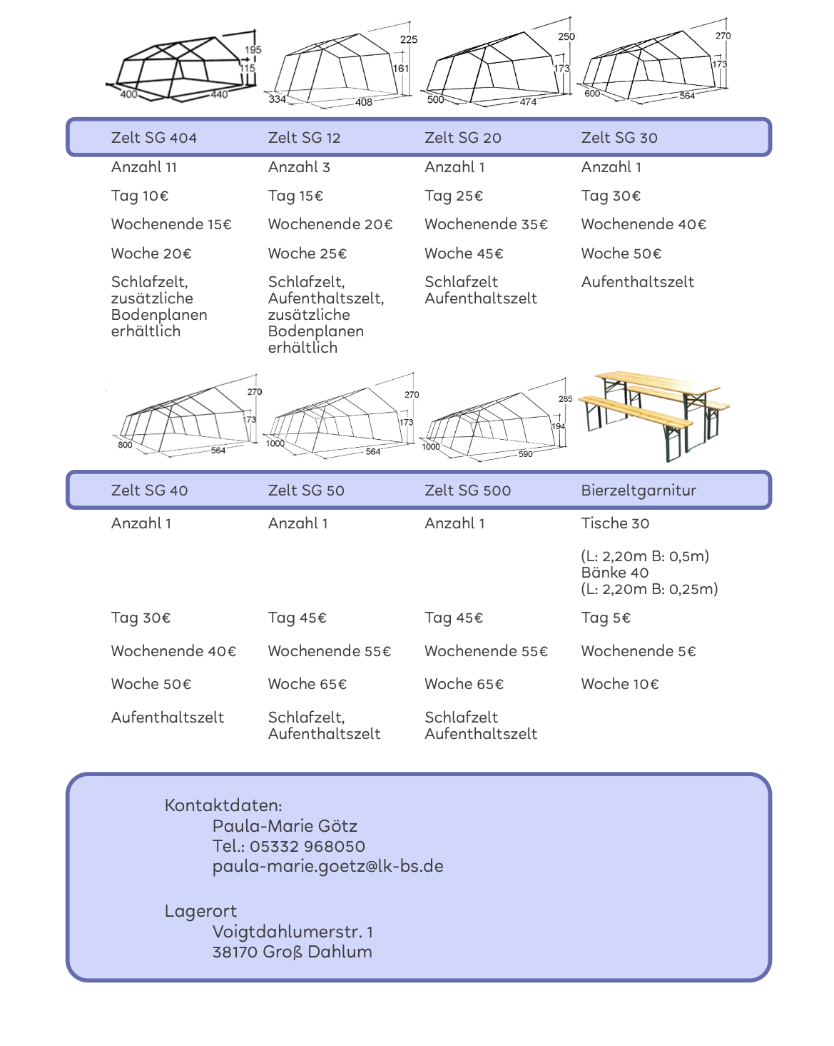 SG 404, SG 20 mit Bodenplane erhältlich.